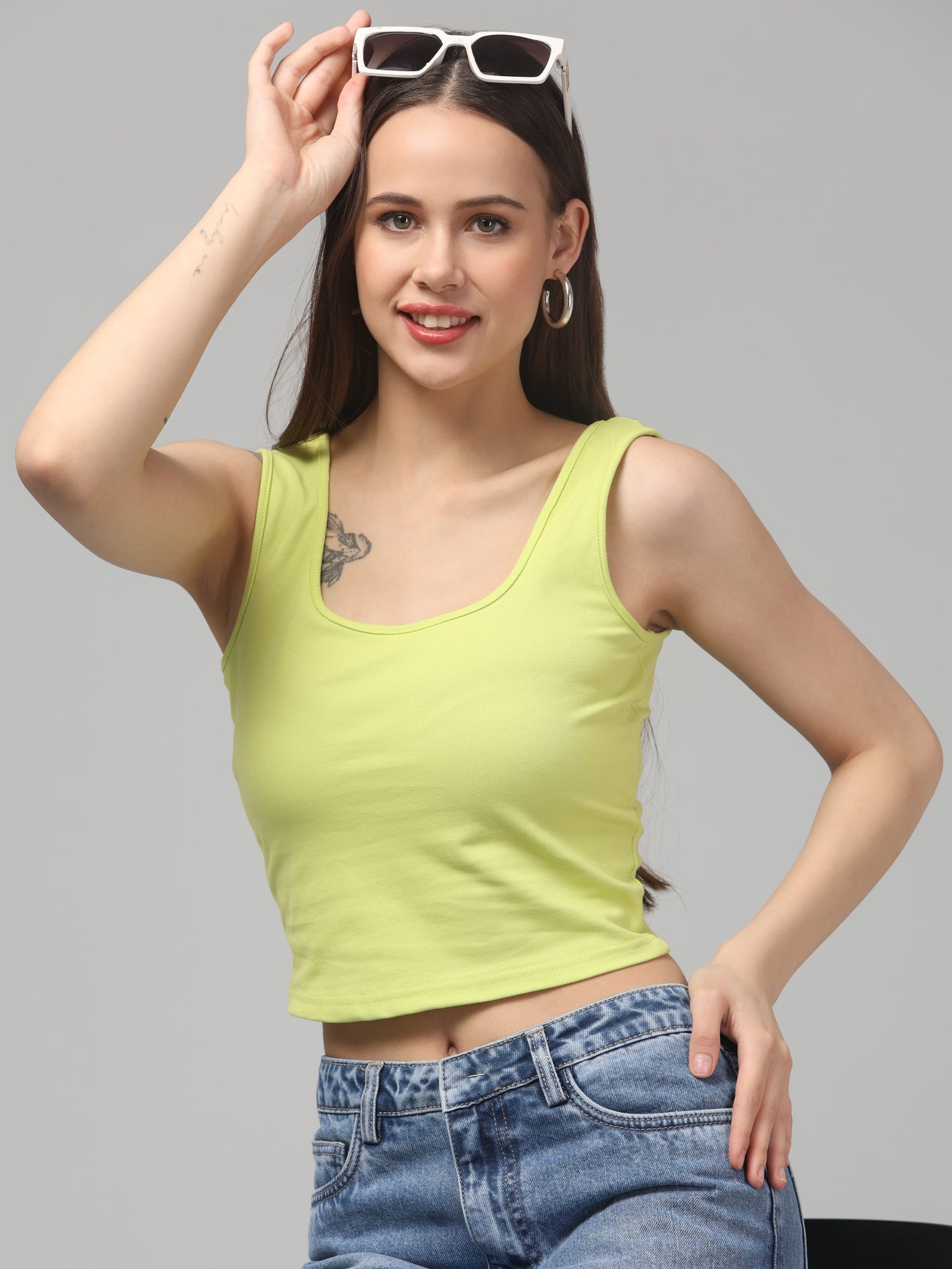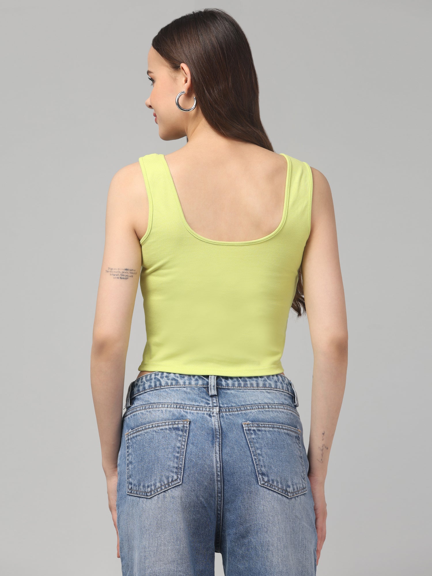 This bright yellow sleeveless top will add a pop of colour to your top collection. It is made with a scoop neckline and comfortable for bright days. It is easy to match with jeans, skirts or shorts because of the cheerful yellow colour. The top is perfect for casual events and fun social gatherings plus it is available in all sizes.