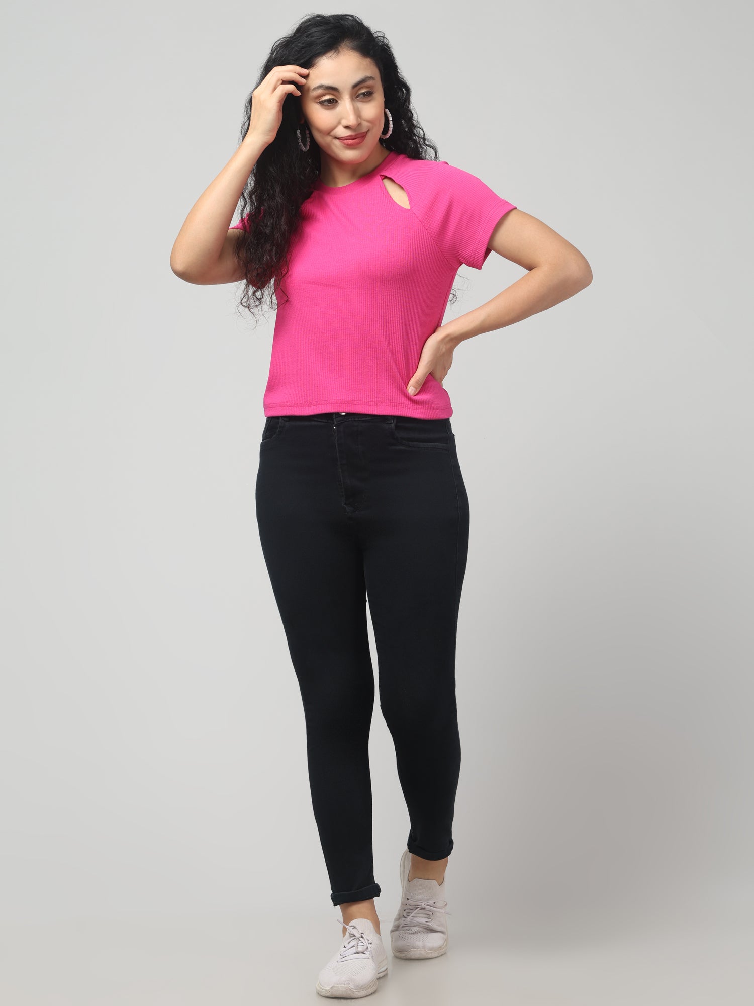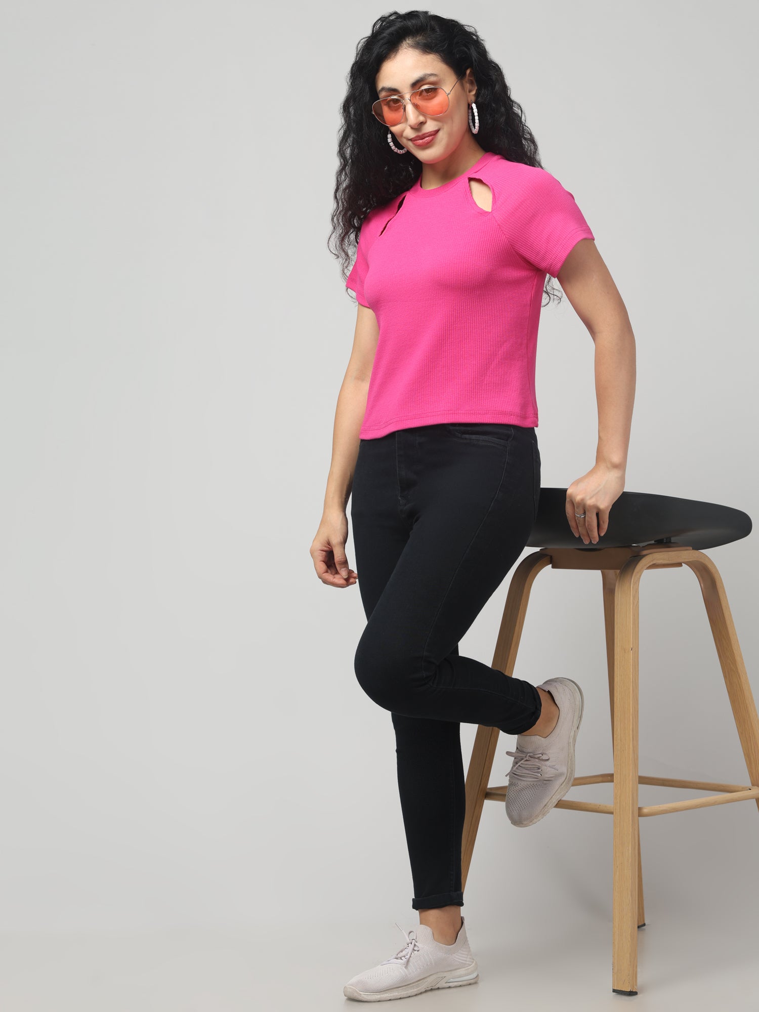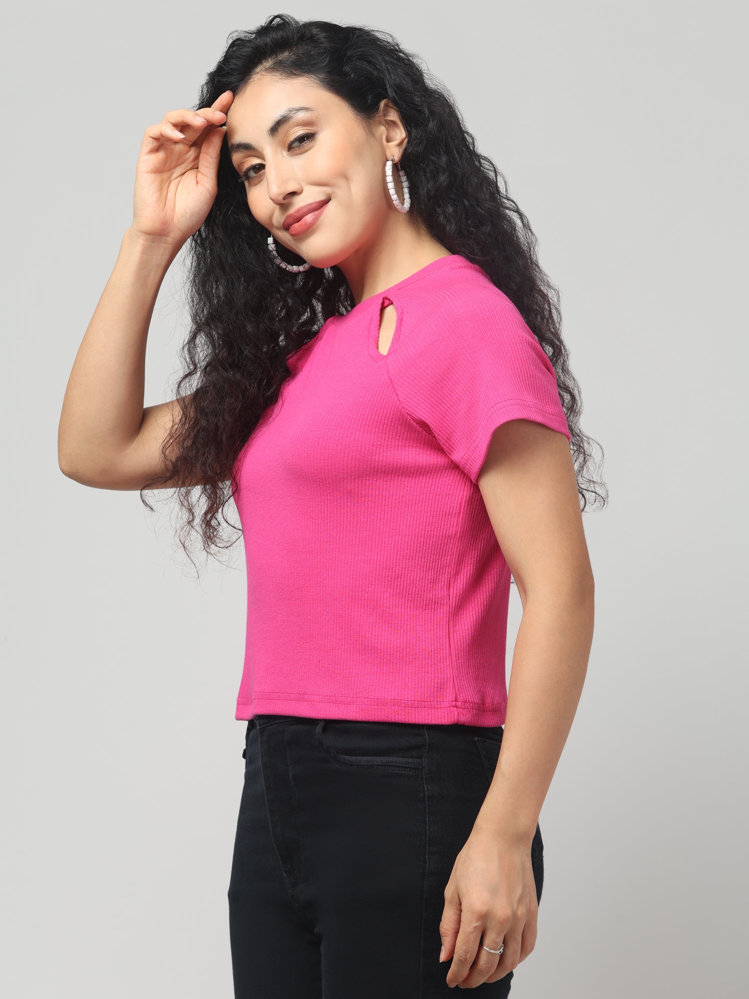 Brilliant Rose cut-out T-shirt