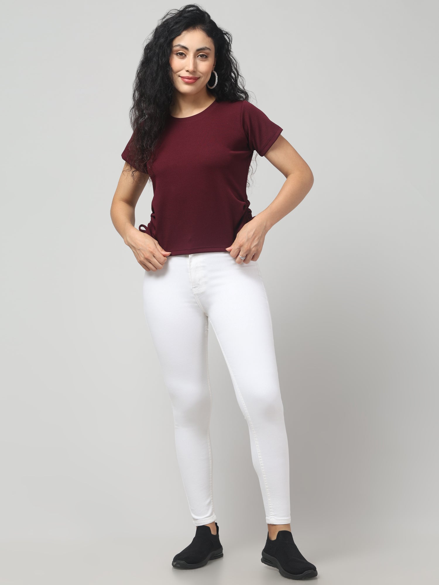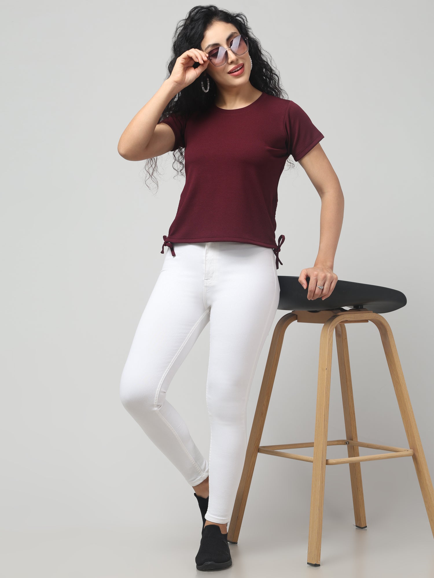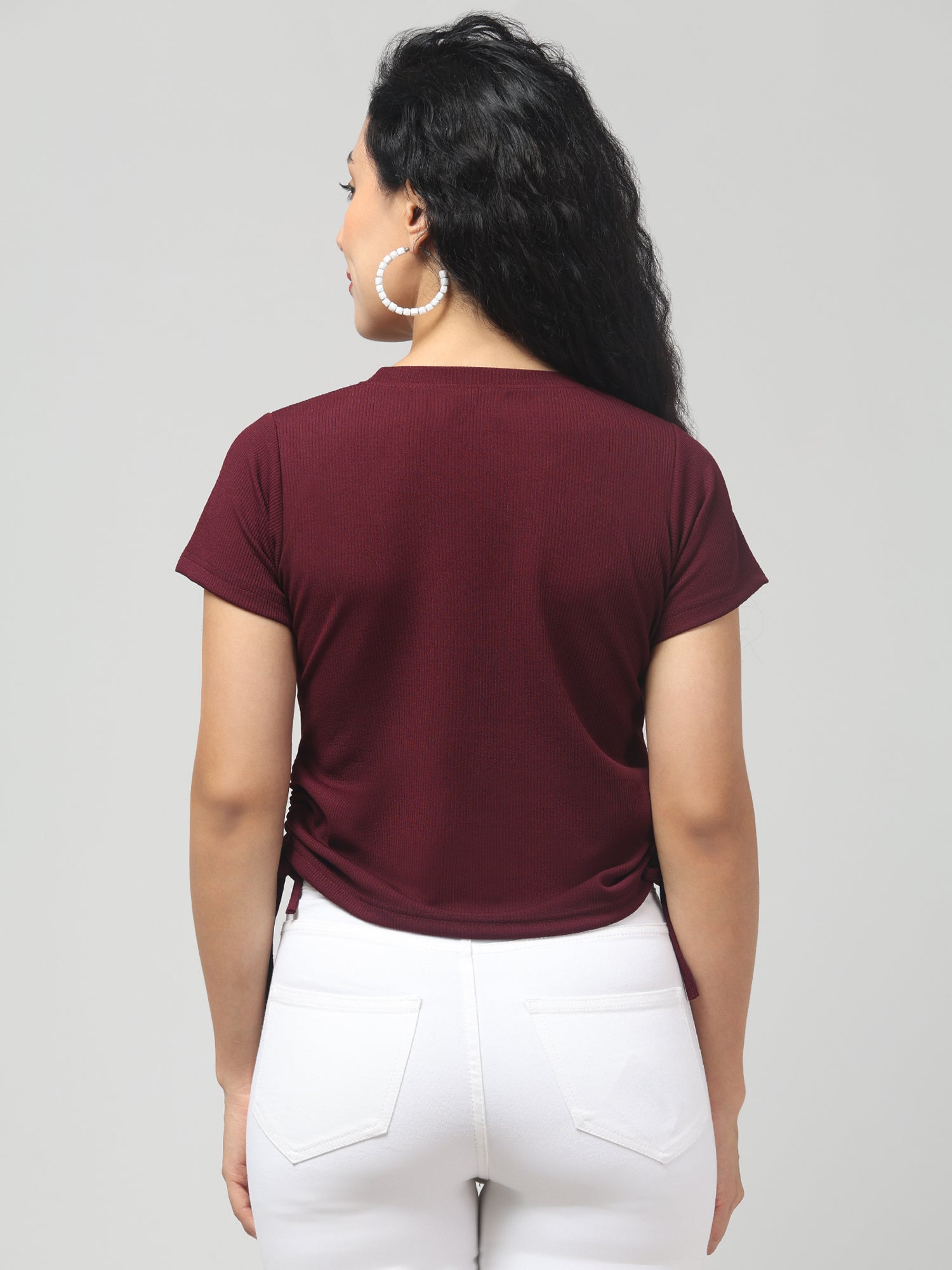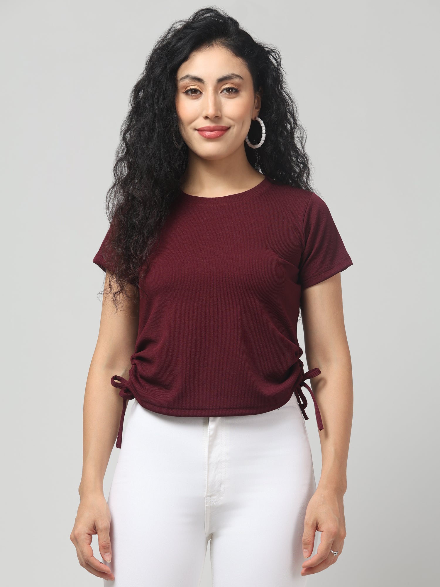Burnt Crimson Solid Short Sleeve Top