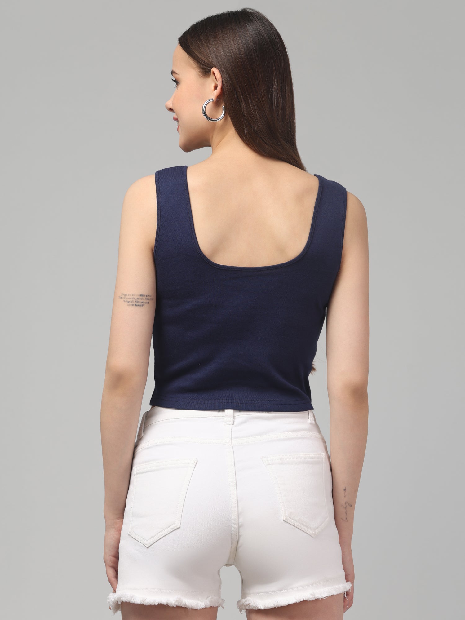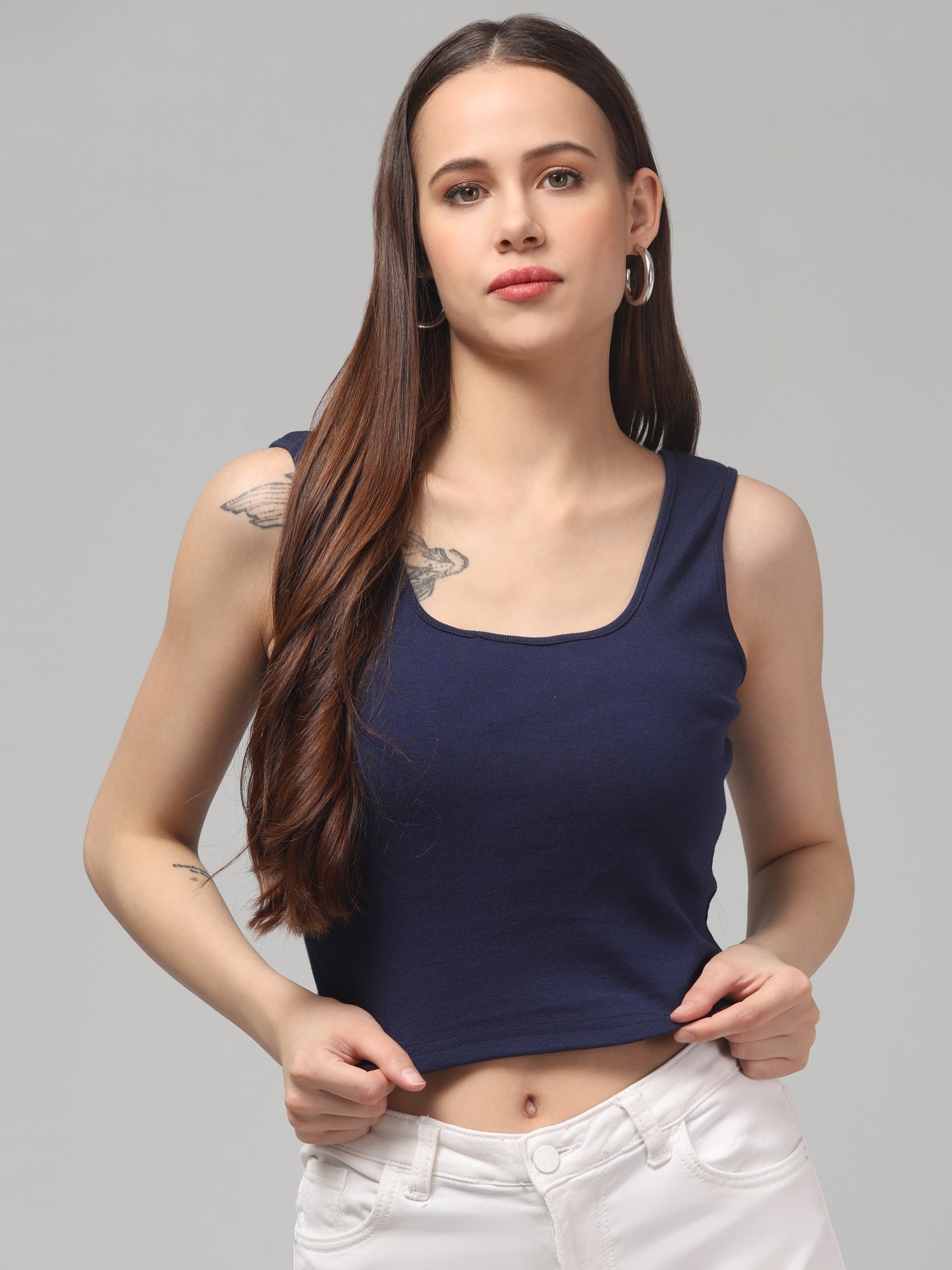 This elegant dark blue top will make your everyday style. its scoop neckline creates a simple look that is easy to match with any bottom wear. Blue colour gives it a classy and simple look. It is perfect for everyday wear. This top is stylish with comfort and the item is a must for every wardrobe, regardless of size.