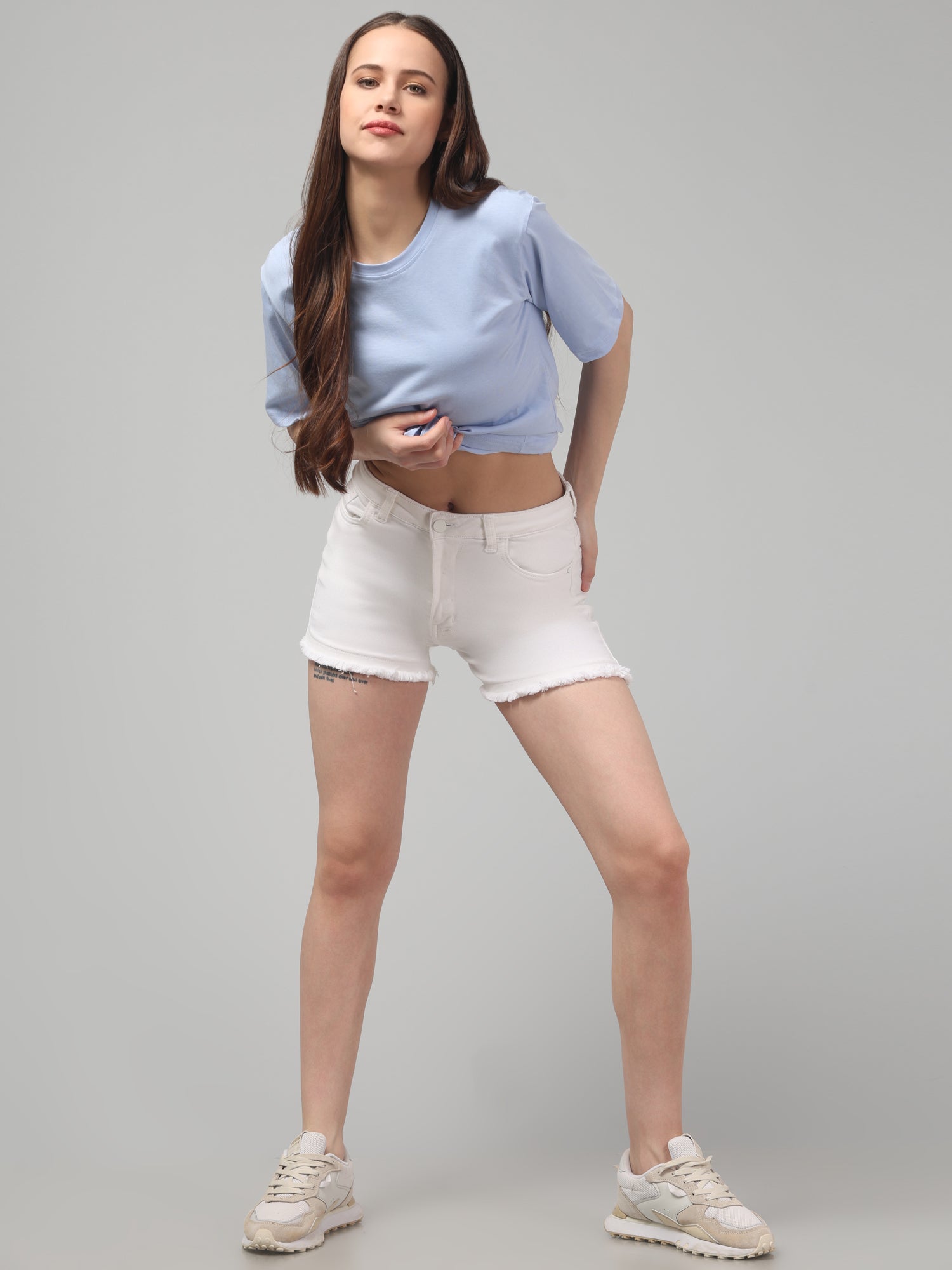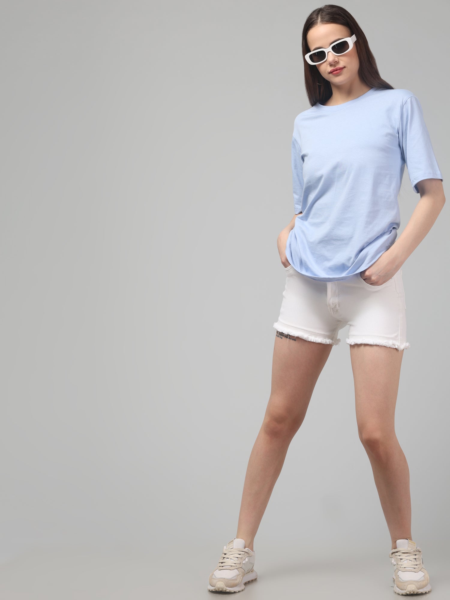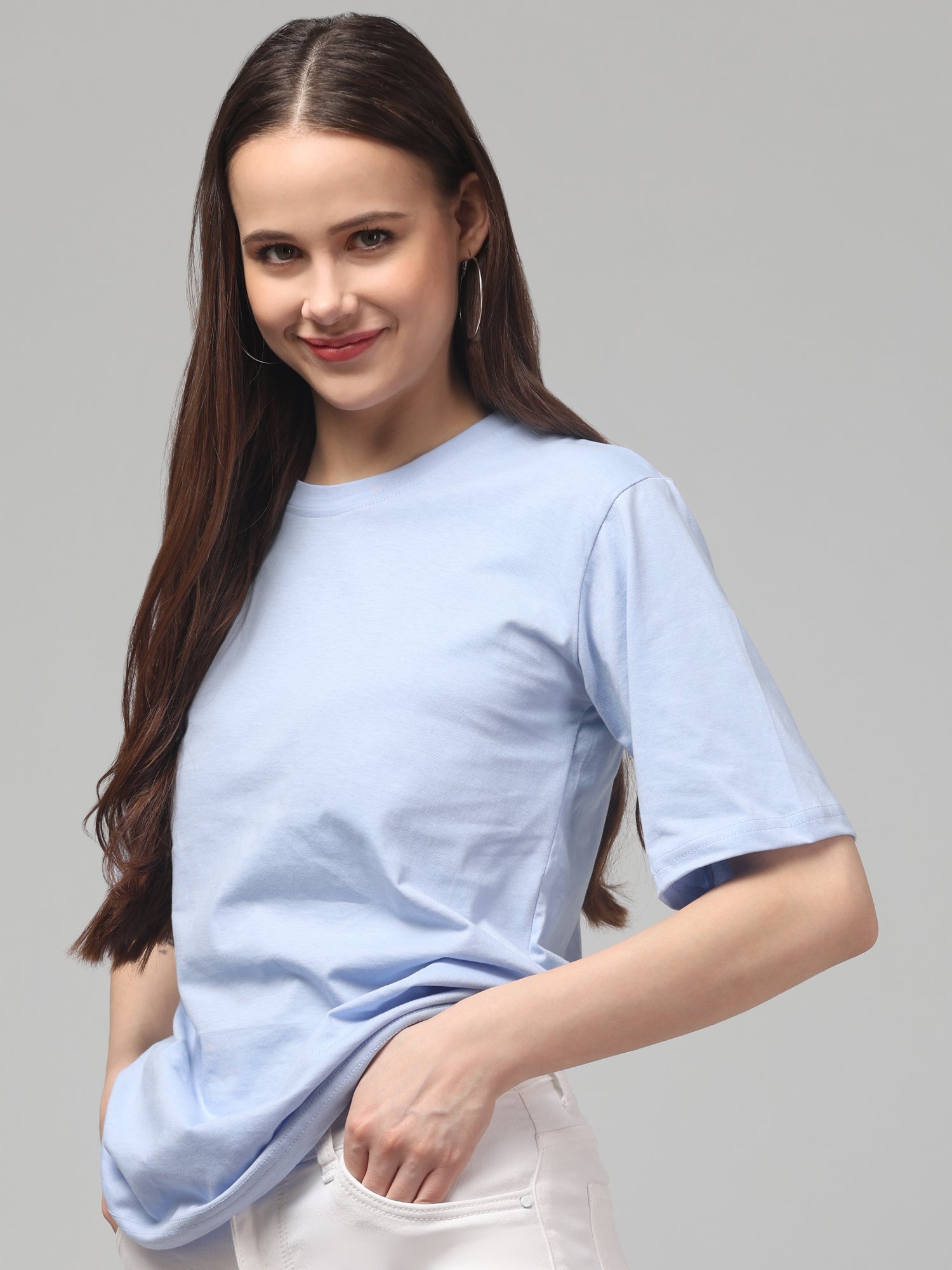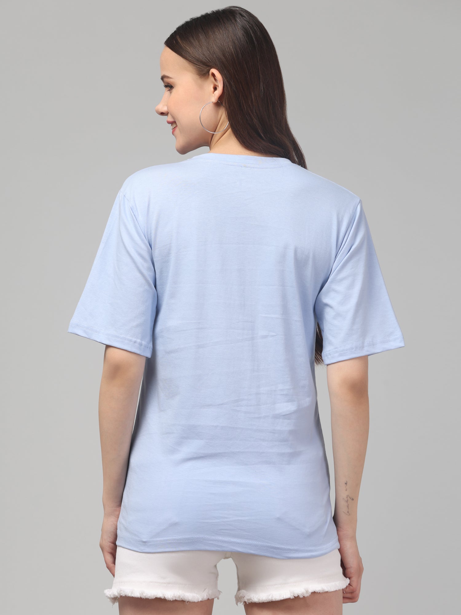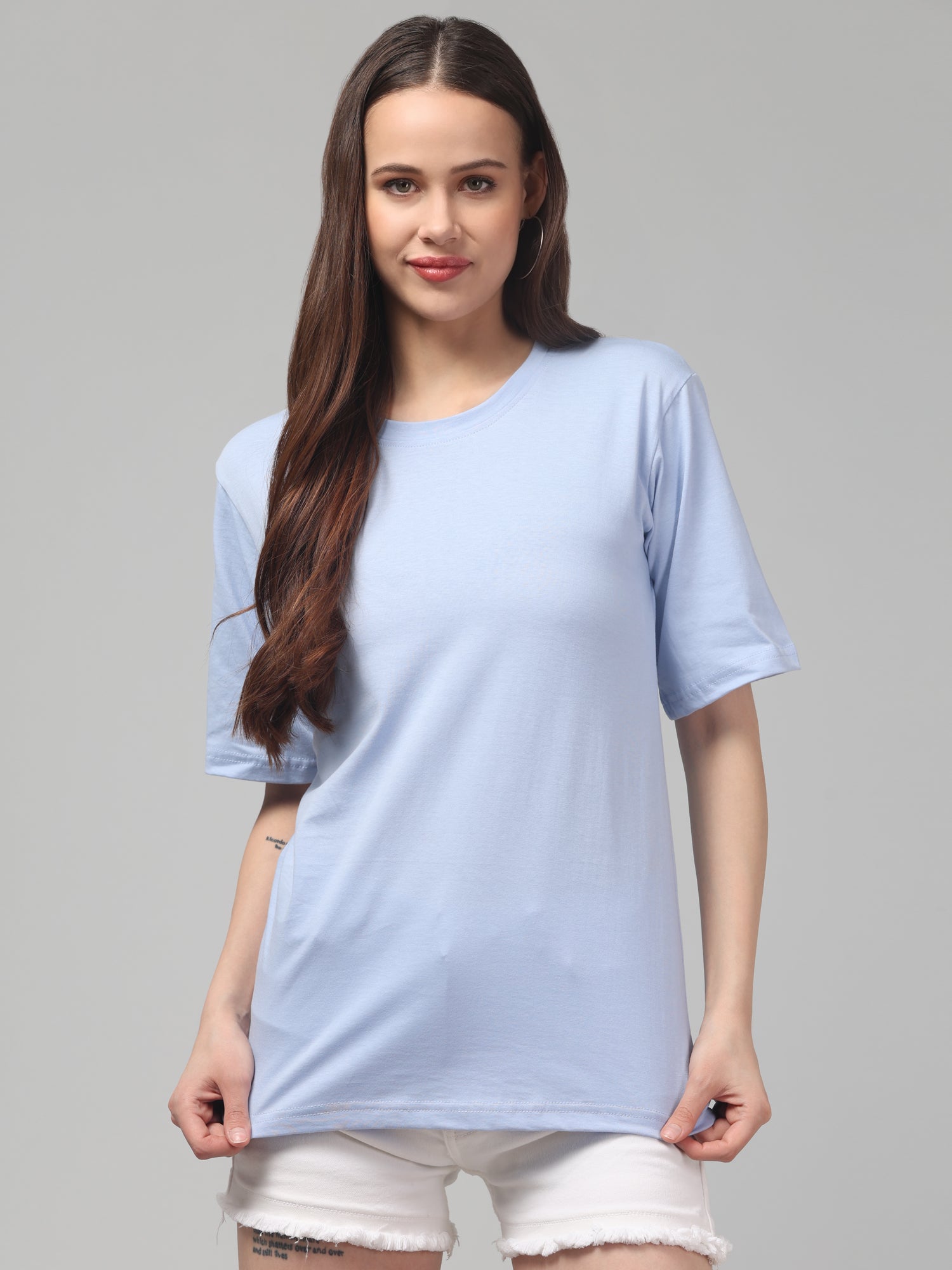 Light Blue Solid Oversized T-Shirt